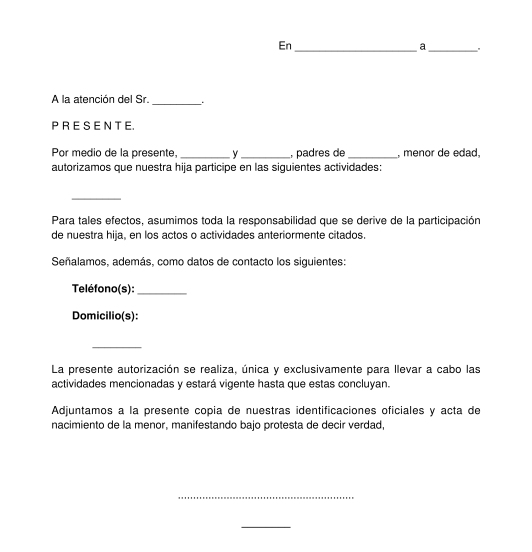 Carta Responsiva Para Menores De Edad Modelo Formato